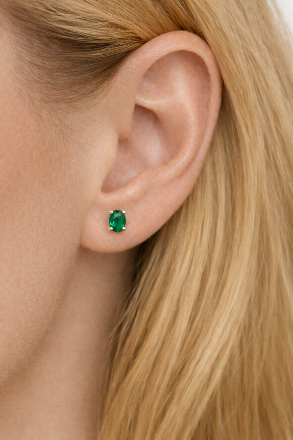 Arete de plata ley 925 y esmeralda de laboratorio.