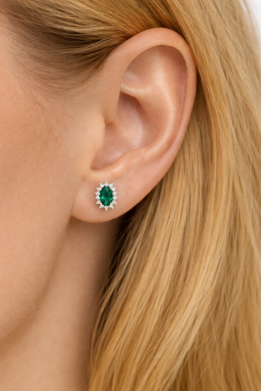 Arete de plata ley 925 y esmeralda de laboratorio.