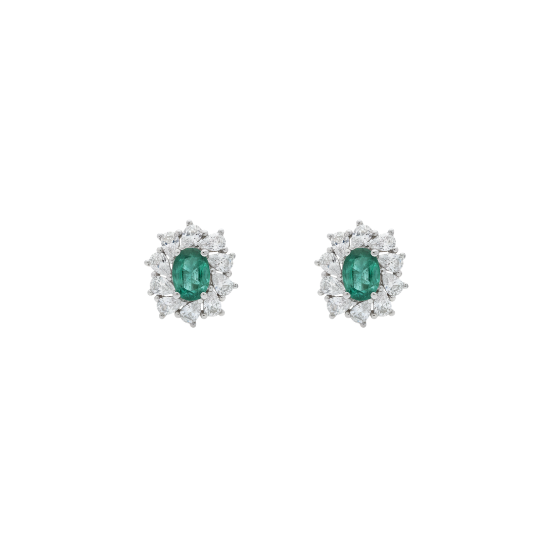 Arete de plata ley 925 con detalles de circón y su piedra central es una esmeralda de laboratorio.